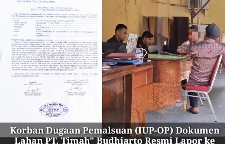Korban Dugaan Pemalsuan (IUP-OP) Dokumen Lahan PT. Timah” Budhiarto Resmi Lapor ke Polres Belitung!